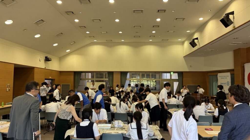 福岡西陵・博多女子・福大大濠・筑陽学園・福岡雙葉・立花・壱岐高校の生徒たちが集まり、IAC52名、顧問教師11名、ロータリアン15名、総勢72名が参加。